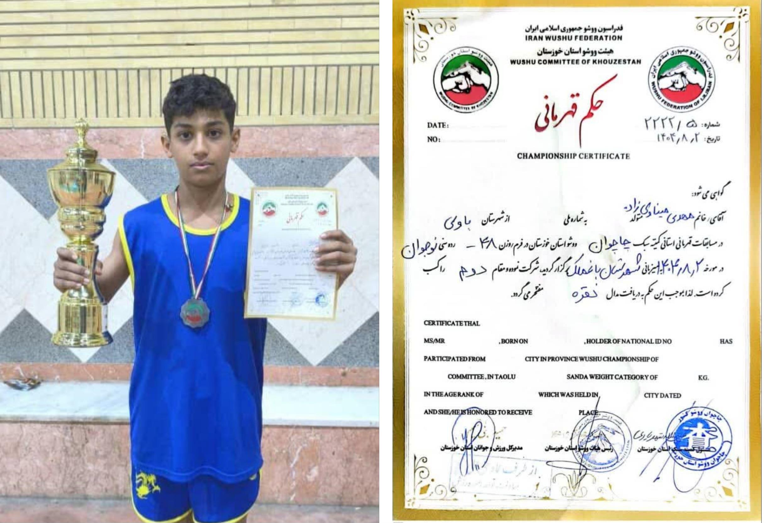 به گزارش روابط عمومی نیروگاه رامین اهواز ،مهدی میناویزاده، فرزند همکار ارجمند نیروگاه رامین اهواز، جناب آقای حسن میناویزاده، در رقابتهای قهرمانی کمیته استانی سبک چاچوان رشته ووشو که در شهرستان باغملک برگزار شد، موفق به کسب مقام دوم این دوره از مسابقات گردید.