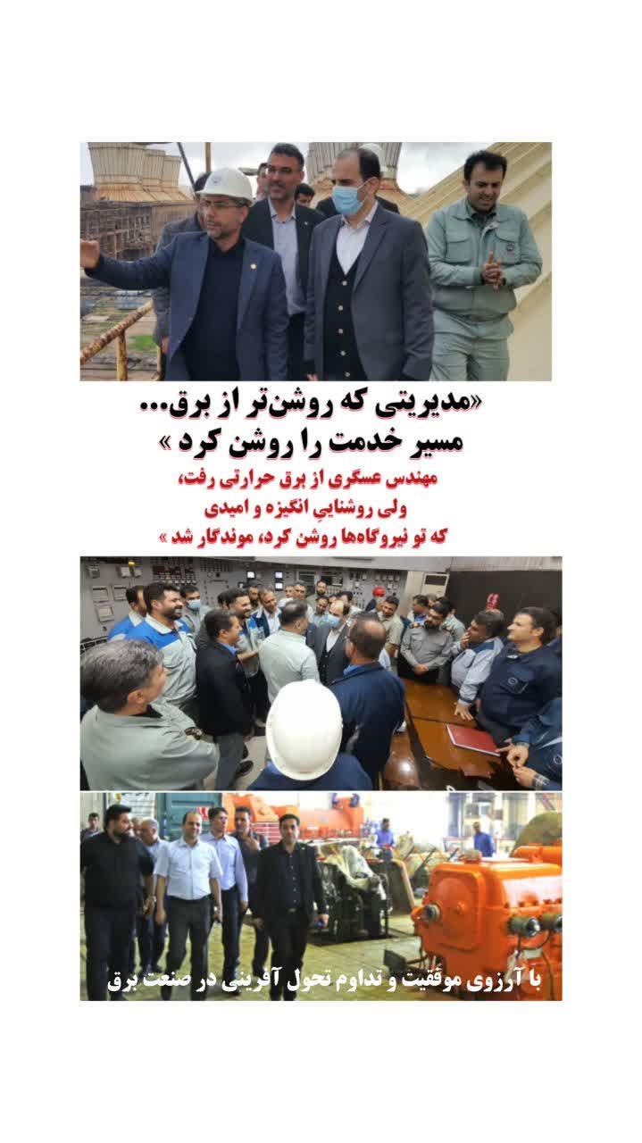 « با تقدیر از اقدامات و عملکرد مهندس عسگری در سمت مدیرعامل محترم صنعت برق حرارتی کشور »