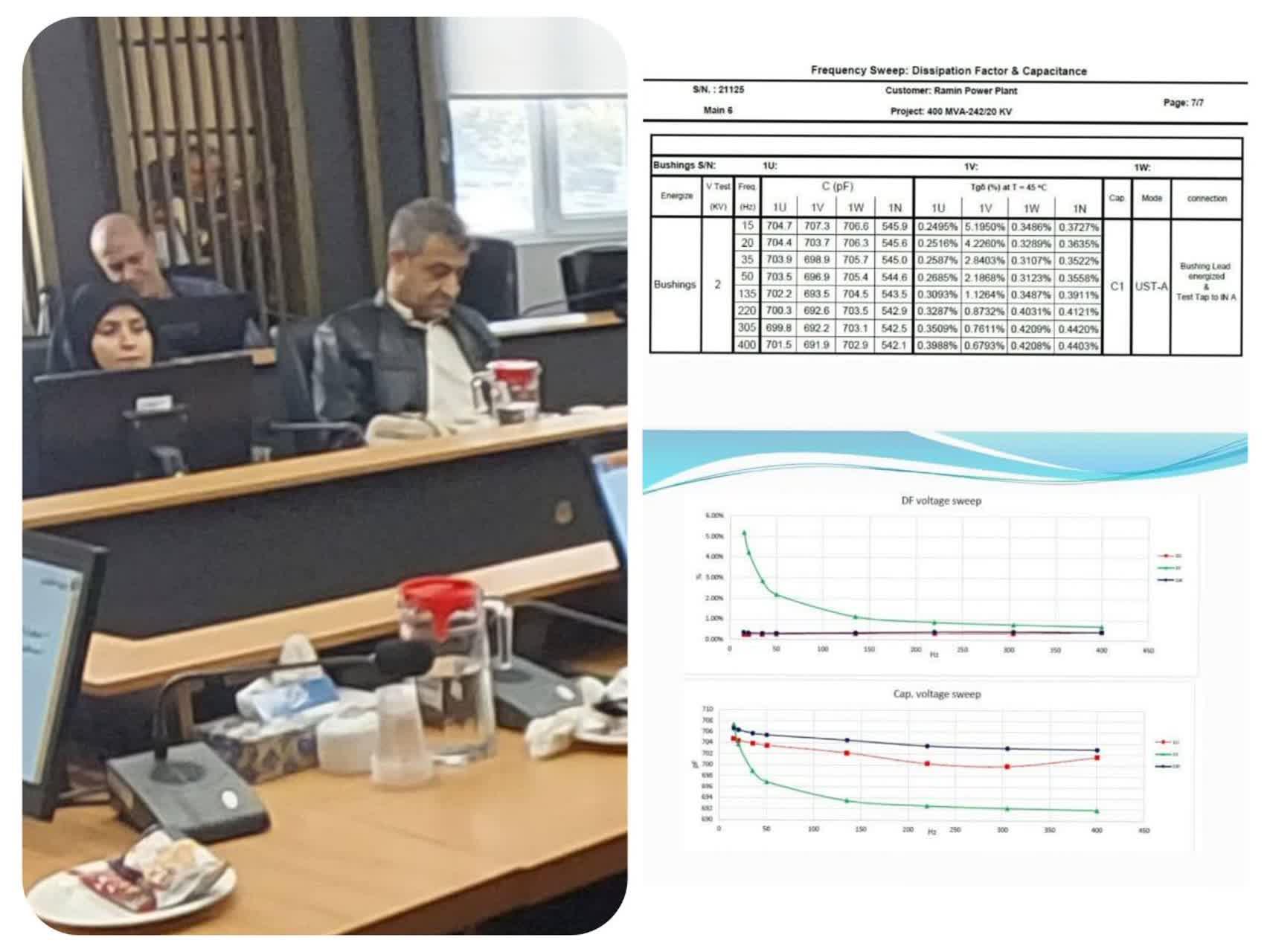 در این نشست تخصصی که با حضور مدیران فنی الکتریک شرکت مادر تخصصی و نمایندگان نیروگاههای مختلف برگزار شد، غدیرپور ضمن تشریح روند پایش وضعیت، به معرفی تستهای تکمیلی تشخیص وضعیت بوشینگها شامل Voltage Sweep، Frequency Sweep، FDS و تست GC روغن بوشینگها بر اساس استاندارد IEC 60599 پرداخت و نحوه خطایابی دقیق و علمی این تجهیزات حساس را تبیین کرد.