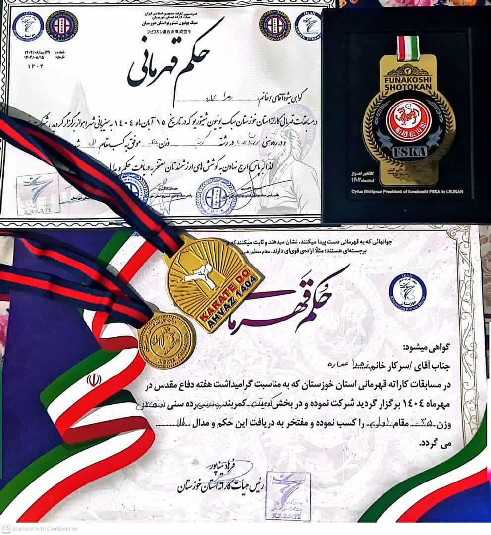 به گزارش روابط عمومی نیروگاه رامین اهواز، خانم زهرا عماره، فرزند همکار ارجمندمان آقای مهدی عماره، موفق شد در رقابتهای قهرمانی کاراته استان، با نمایش توانمندی و شایستگی مثالزدنی، مقام برتر این دوره از مسابقات را کسب کند.