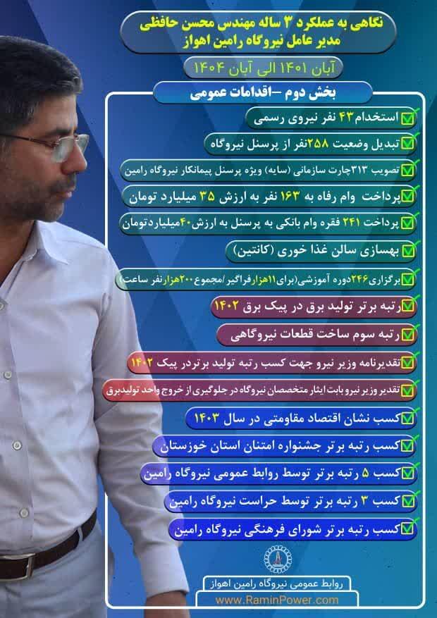 اخبار گامهایی که نیروگاه پیرِ رامین اهواز را در مسیر روشنتری قرار داد اینفوگرافیک/ مهمترین دستاوردها و اقدامات عمومی اینفوگرافیک/ مهمترین دستاوردها و اقدامات عمومی ۲۲ آذر ۱۴۰۴ ۱۴:۲۰ روابط عمومی نیروگاه رامین اهواز | تعداد بازدید : ۳۷